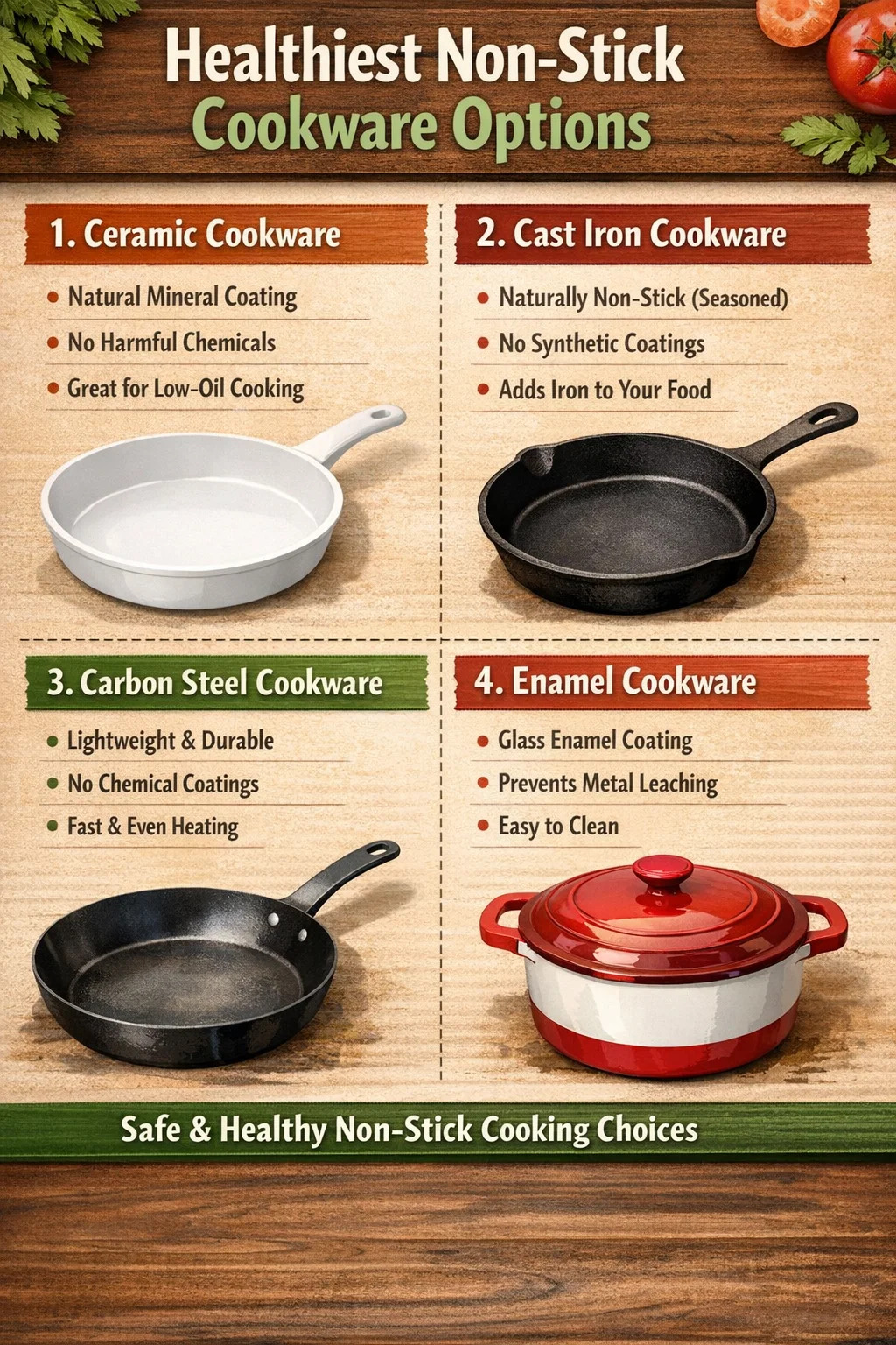 Dưới đây là phần giới thiệu chi tiết về một số loại dụng cụ nấu chống dính được nhiều người coi là lành mạnh nhất: