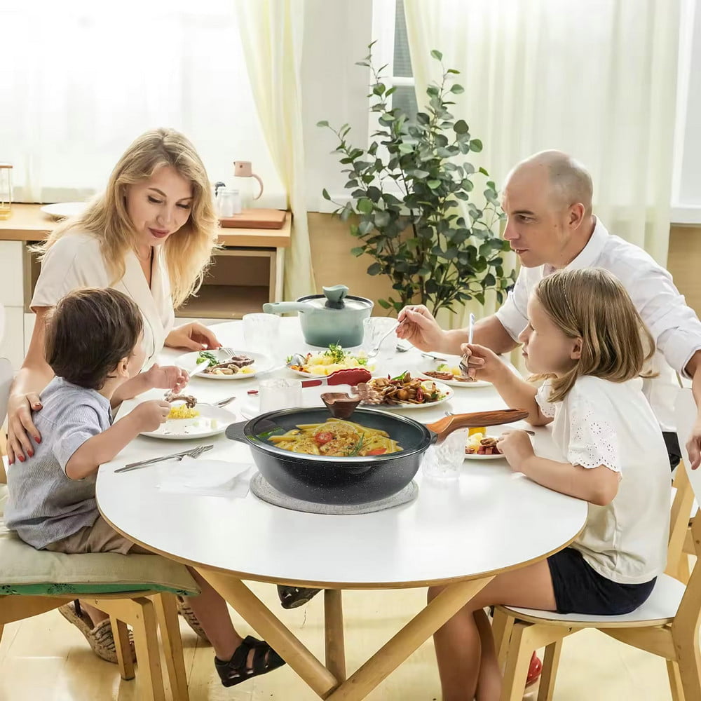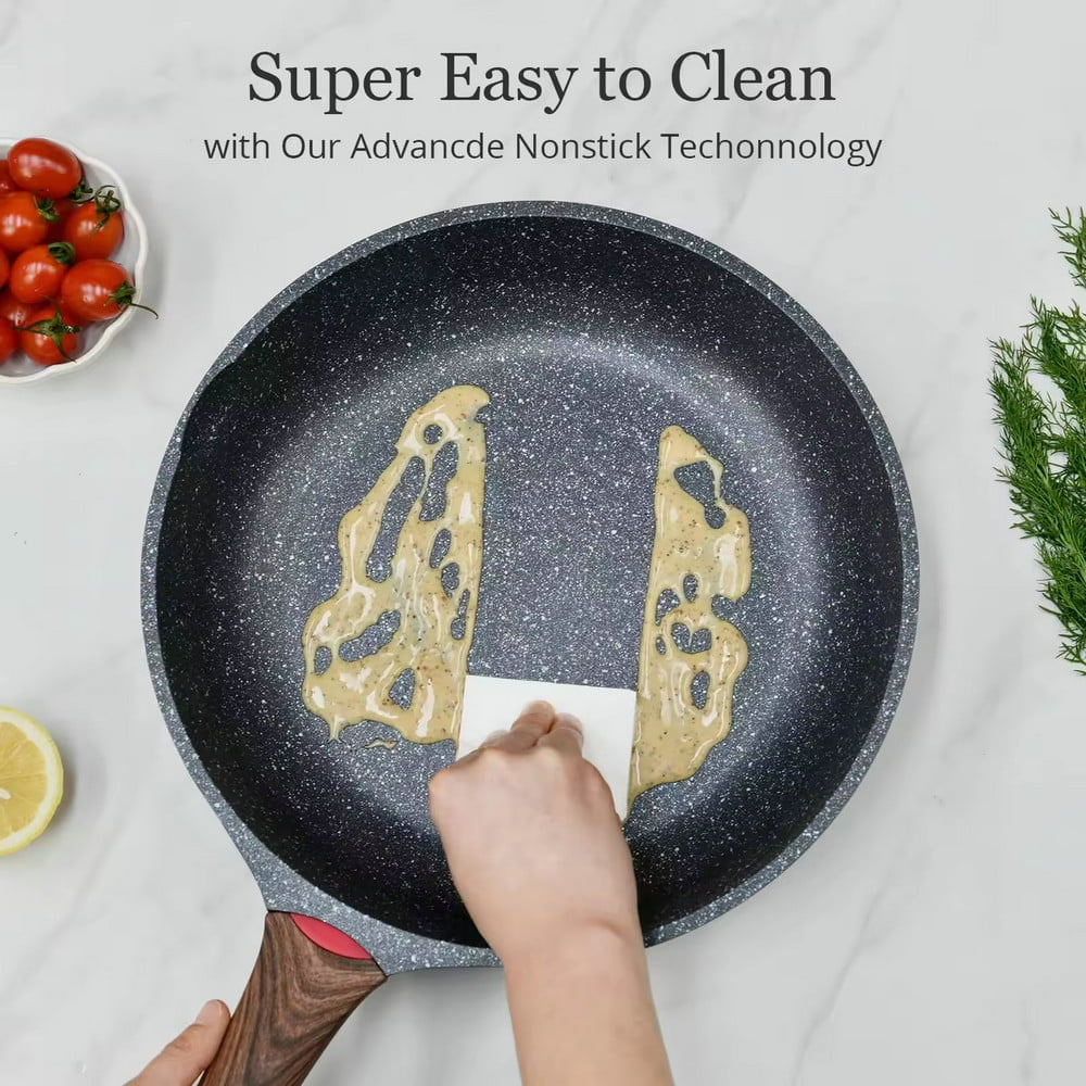 Chảo chống dính cỡ lớn có logo tùy chỉnh kích thước đầy đủ có tay cầm bằng gỗ