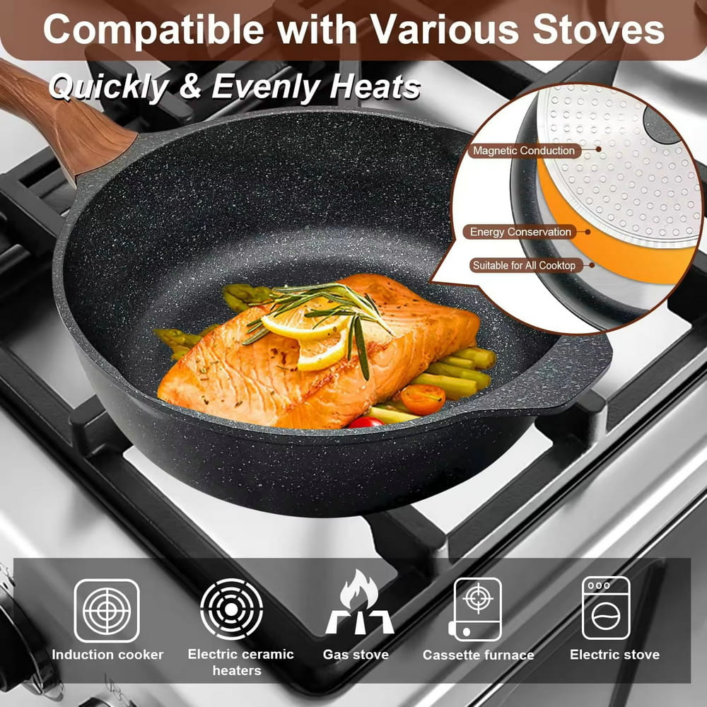 Chảo chống dính cỡ lớn có logo tùy chỉnh kích thước đầy đủ có tay cầm bằng gỗ Wholesale
